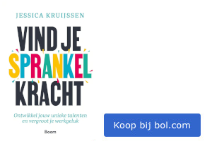 In Vind je sprankelkracht ontdek je wie je echt bent, wat voor jou belangrijk is, wat je wilt bereiken en vooral ook hóé je dat bereikt. Met haar heldere uitleg, concrete oefeningen en inspirerende verhalen neemt Jessica Kruijssen je bevlogen mee op ontdekkingsreis waardoor jij stap voor stap meer werkgeluk creëert. "Het is een heerlijk leesbaar boek. Jessica legt mooi de link tussen de theorie en praktijk en heeft het boek zo geschreven dat het net lijkt alsof je helemaal zelf een workshop volgt. De informatie is erg compleet."