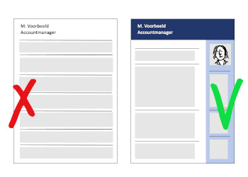 Een goede foto is cruciaal. Dit moet geen vakantiekiekje zijn maar een zakelijke foto. Een zakelijke foto is geen pasfoto maar ook geen foto die is genomen in een pretpark met mensen of dieren op de achtergrond. Zorg voor een neutrale achtergrond waarbij voordelig bent uitgelicht en een positieve uitstraling hebt. Het kan geen kwaad hierin te investeren. Een goede profielfoto kan jaren meegaan en hoeft niet heel veel te kosten. Bij fotografiezaken die officiële pasfoto’s maken, kan je vaak ook terecht voor een mooie profielfoto. Deze foto kan je ook gebruiken voor je LinkedIn profiel